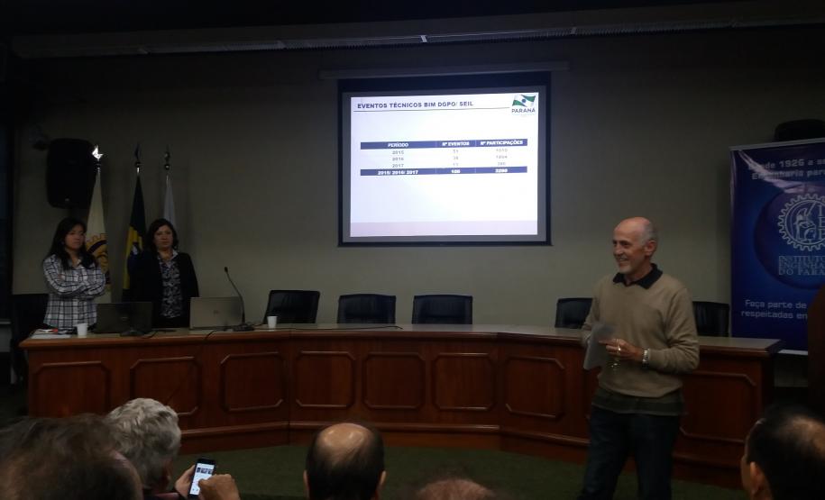 Com um público de engenheiros e arquitetos, o presidente do IEP Nelson Luiz Gomez recepcionou a todos contando as ações do IEP nesses últimos dois anos e convidando a todos a participar dos eventos por eles organizados. Em seguida, passou a palavra à Sra. Fátima J. Gonçalves, diretora de novos negócios da Trimble, que apresentou a empresa, assim como, as últimas novidades de softwares BIM utilizados para a infraestrutura. E então, a engenheira cartógrafa Juliana Takahashi Miyoshi, da empresa Engemap, apresentou o software TILOS que é um software de planejamento de obras lineares, que possibilita a visualização diferenciada para o acompanhamento de obras, utilizando a relação time x location. O evento marca mais uma parceria do Plano de Fomento ao BIM, e abre a possibilidade para um próximo treinamento junto ao GT BIIM DER.